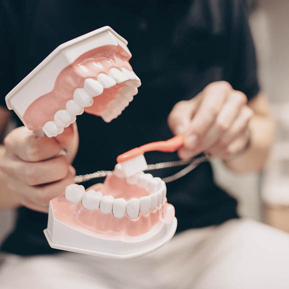 Wir kontrollieren Ihre Zähne regelmäßig und geben Tipps zur richtigen Pflege. So kümmern wir uns um den Erhalt Ihrer Zahngesundheit – bereits ab den ersten Milchzähnen.